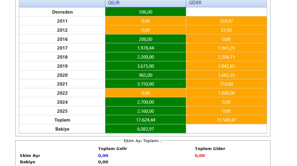 Okul Aile Birliği Gelir Gider Tablosu 2025 EKİM